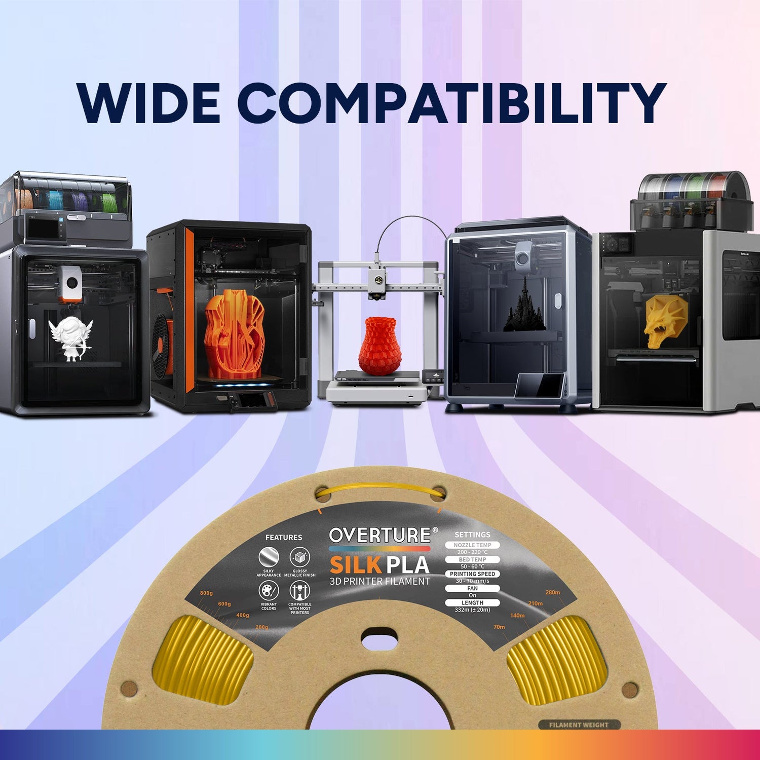 Silk PLA, the luxurious 3D printing filament that brings an exquisite shine to your creations! With its remarkable silk-like finish, Silk PLA offers a stunning array of colors that glisten and shimmer, transforming ordinary prints into extraordinary works of art. The silky texture not only enhances the visual appeal of your prints but also adds a sophisticated touch that is sure to impress.