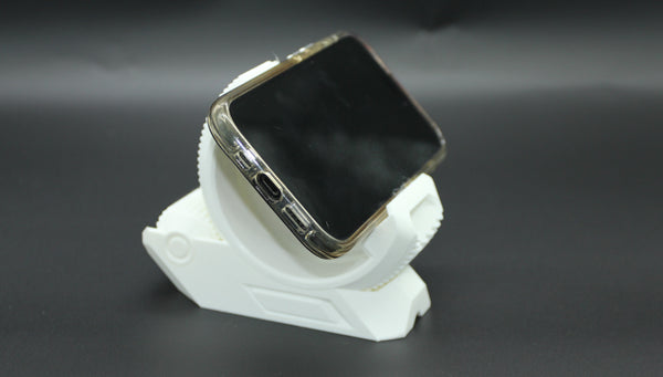 A rugged, gear-powered phone stand that adjusts with a satisfying twist. 3D-printed from durable, eco-friendly materials, it features non-slip grips and a sturdy build for hands-free streaming, gaming, or video calls. Compact, portable, and ready to roll—wherever you take it.