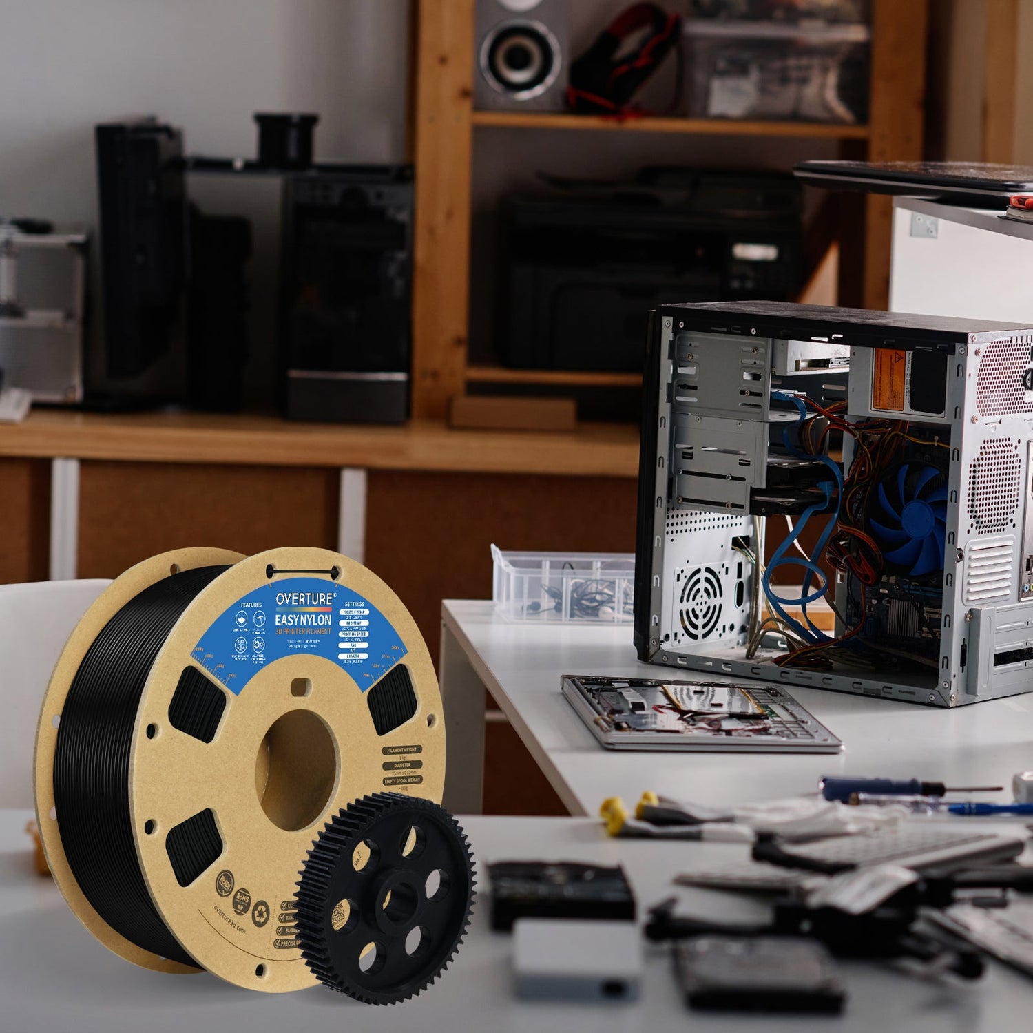 Overture Nylon Filament, a versatile and high-performance material designed for a wide range of applications. Known for its exceptional strength, durability, and flexibility, Nylon is an ideal choice for creating functional prototypes, mechanical parts, and intricate designs that require resilience and toughness. Its inherent resistance to abrasion and impact makes it suitable for demanding applications, including automotive components, industrial parts, and outdoor gear. The material can also be easily dyed or treated, providing endless possibilities for customization and creativity.