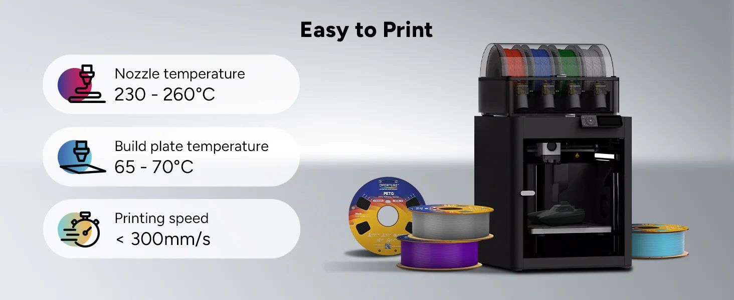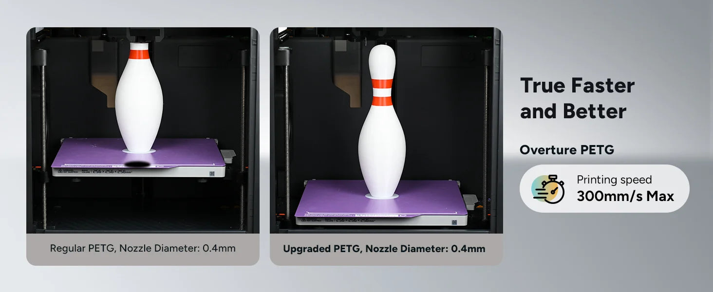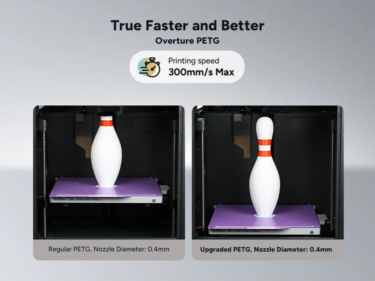 Overture PETG exhibits good heat resistance, with a Vicat Softening Temperature of 85.1°C, according to ISO 306 and GB/T 1633 standards. While suitable for many applications, it's important to consider that it may not perform as well as higher-temperature resistant materials.