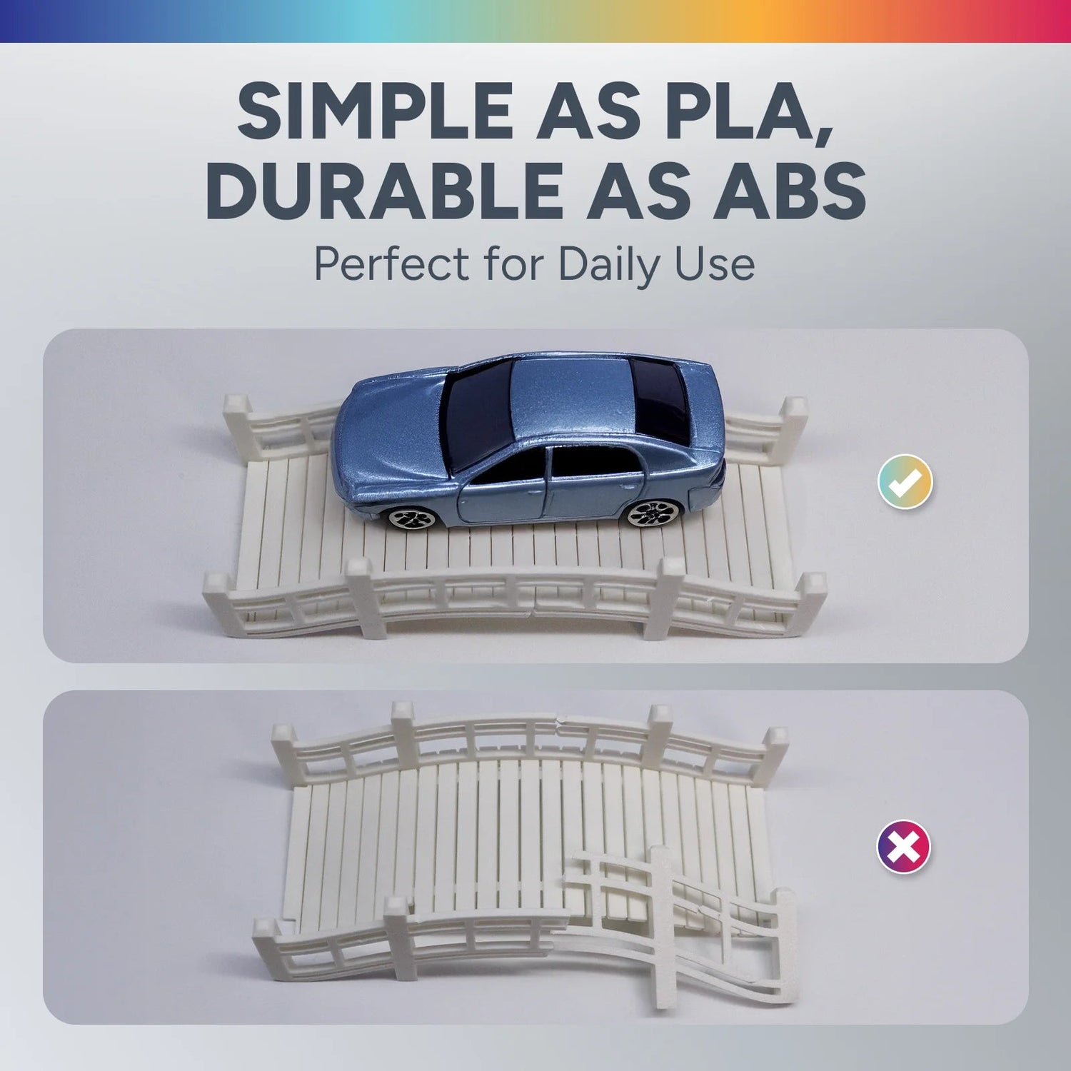Brittle filament is a sign of moisture absorption. We recommend drying the filament and storing it in an airtight bag or container.Please refer to the“Drying Time”table for suggested drying times.