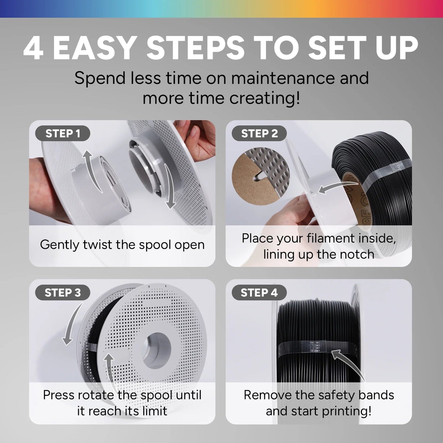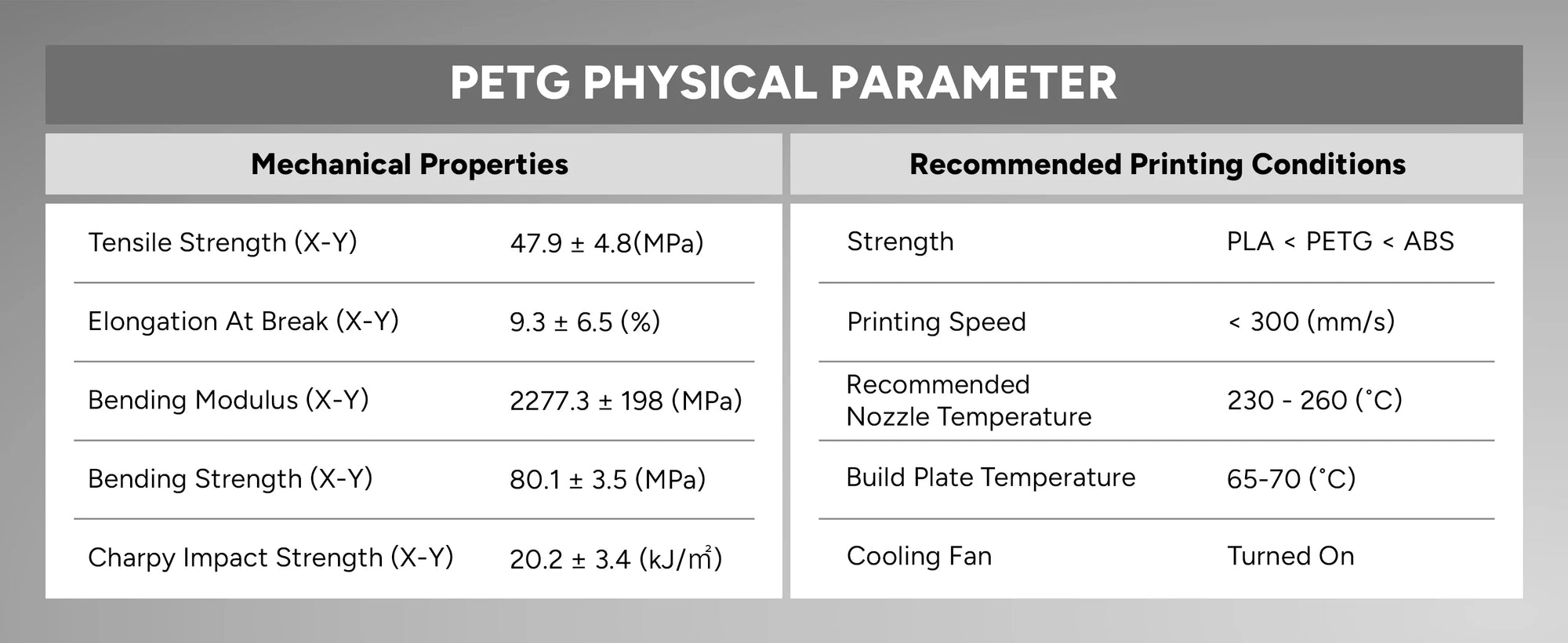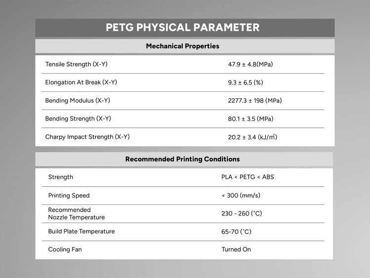 PETG-based filaments are sensitive to moisture, so we recommend drying them at 65°C (149°F) for 7 hours. Avoid prolonged drying times, as excessive heat can cause the filament to become brittle and unsuitable for printing. For storage, keep it in a sealed container with desiccants to maintain low humidity levels.