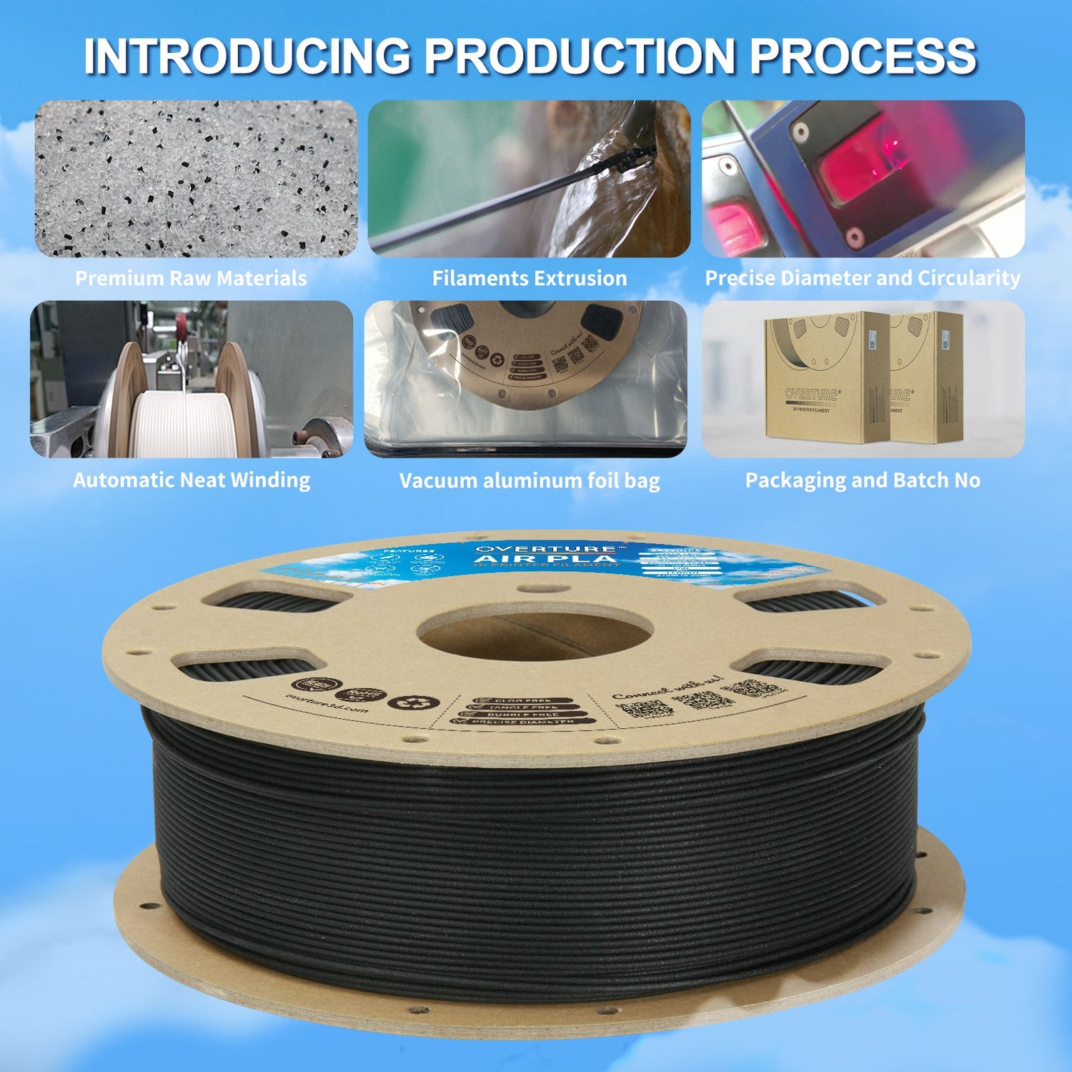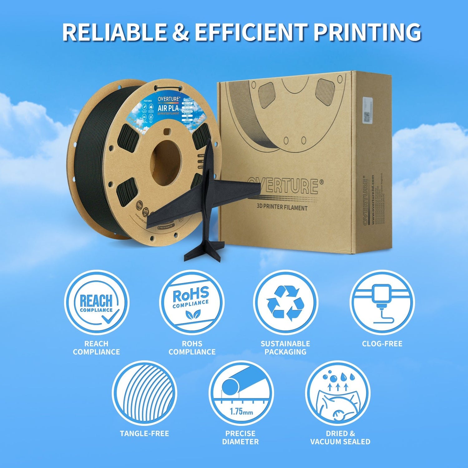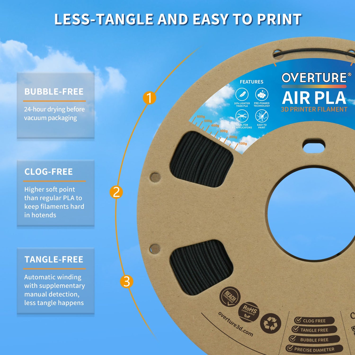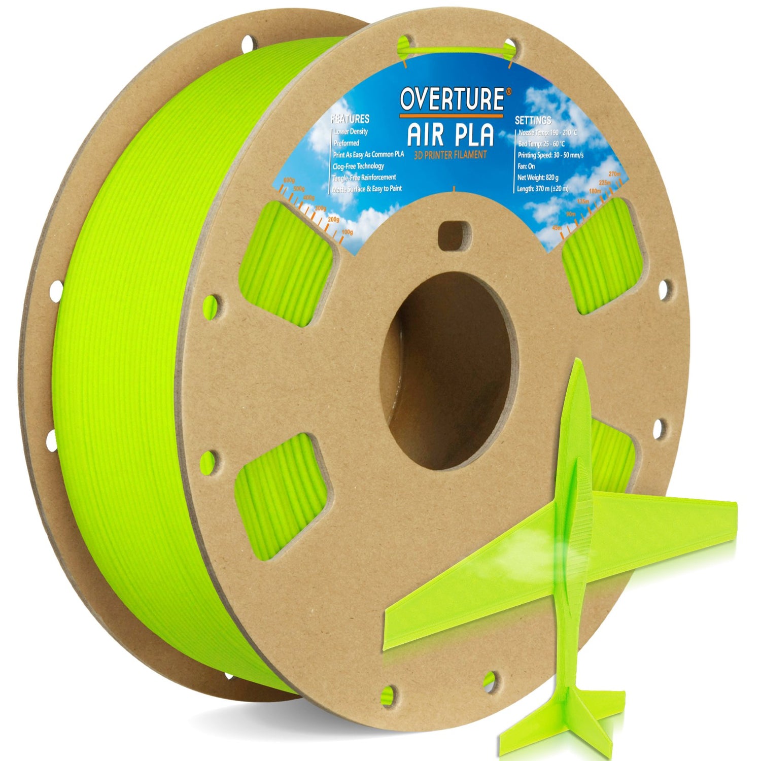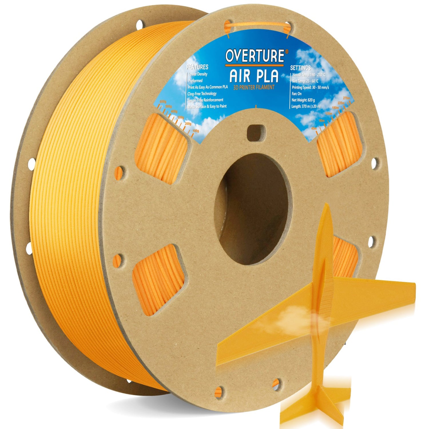 Overture AIR PLA, a remarkable low-density foam filament designed to revolutionize your 3D printing experience! Utilizing advanced foaming technology, AIR PLA achieves a density approximately 20% lighter than standard PLA, allowing for the creation of high-quality printed parts that are significantly easier to handle.